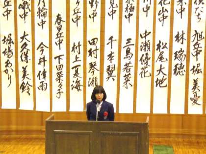 11月3日(土)、中学校総合文化祭として、「第54回京都市中学校弁論大会」が四条河原町下がった「総合教育センター」で実施されました。七中からは、Hさんが出てくれました。演題は「挨拶から学ぶこと」でした。15人中1番目の発表でしたが、落ち着いた発表でした。
