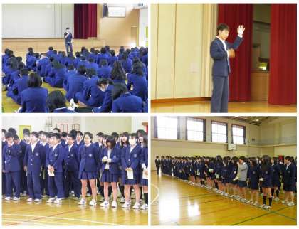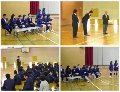 4月17日(水)4時間目、3年生はいよいよ18日(木)〜20日(土)沖縄へ修学旅行に出ます。当日の集合時刻が飛行機の関係で午前5時15分ととても早いので、前日に結団式を行いました。修学旅行委員さんの司会で、明日への期待と戒めを確認しあい、最後に沖縄で披露する「平和の鐘」の合唱を練習して終わりました。いい修学旅行を迎えることを祈ります。