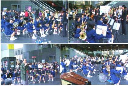 11月8日(日)、下京区の発足130周年を記念してスタンプラリーが行われました。そのオープニング式典が京都駅前広場で行われ、本校吹奏楽部が「下京区の歌」などを演奏させていただきました。式典での演奏ということで、お祝いと共に招いていただいた感謝の気持ちをこめて演奏できました。立ち止まって聞いて下さる方もあり、いつもとは違う広い空間で演奏した経験は、これからの活動にも活かされると