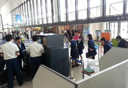 手荷物検査を無事終了し、みんな楽しく搭乗するのを待っています。