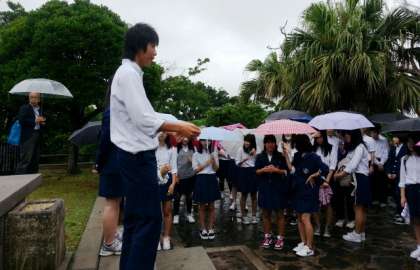 セレモニーでは、平和の鐘を合唱し千羽鶴を捧げました。