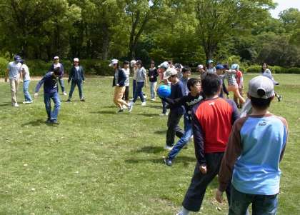 到着後、飯ごう炊さんまでにドッチボール大会をしました。