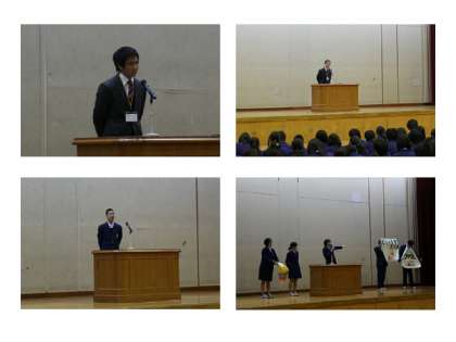 三つ目は、全国の中学生の代表が集まって会議をするメンバーに本校の生徒会長が選ばれたということと、国体の強化選手に本校の生徒が選ばれたという話をしました。