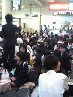 午後から暑くなっています。那覇の国際通りで買い物をすませて、那覇空港に着きました。全員、元気です。これから、飛行機に乗る為に、ゲート前で待っています。