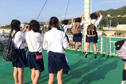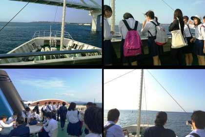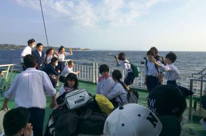 フェリーは伊江島に向かって出発しました。みんな楽しんでいます。