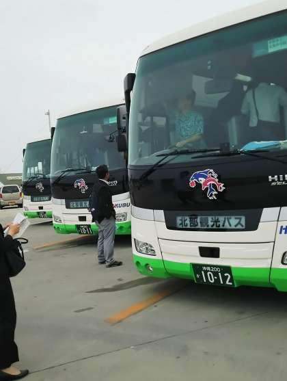 子どもたちは本部港に到着し、国際通りに向けてバスで移動しました。