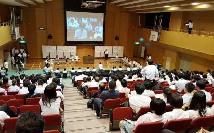 本校からも生徒会長が参加し、しっかりと会議で意見を発表しました。また、4人の生徒会本部役員が観客席から会議を応援しました。
