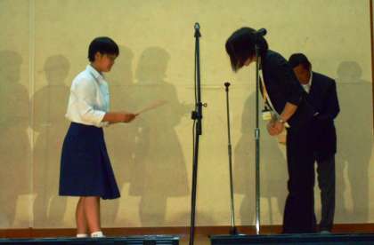 雨で閉会式が中止になった「体育の部」の表彰式を行いました。