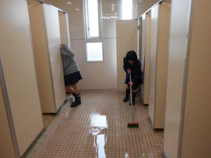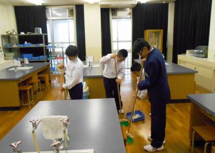 全校生徒が学校中に散らばり、一斉に清掃に取り組みます。