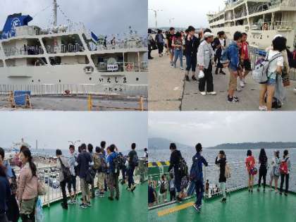 ホテルからバスで 本部港へ移動し 伊江島へ渡ります。