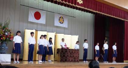 生徒会の群読と決意の言葉は、たいへん堂々としており、現在の七中生が社会とのつながりの中でたくましく成長している姿が伝わってきました。