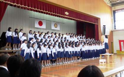 大人の挨拶の後は、生徒会の「決意の言葉」と3年生の合唱です。