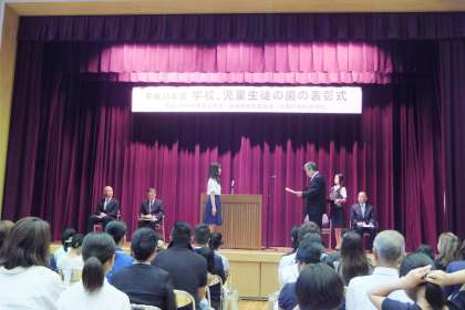本校3年生女子の作品が入賞し、授賞式で賞状をいただきました。