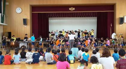 子どもたちや保護者・地域の方々を前に、子どもたちの好きな楽曲を演奏しました。小さな子どもたちが手をたたいたり身体でリズムをとりながら音楽を楽しんでくれている姿を嬉しく思いました。これからも「地域に愛される吹奏楽部」として頑張ります!