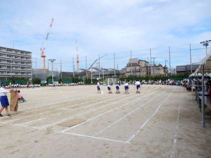 午後の2つめの個人種目チャレンジ走 コースに様々な競技を