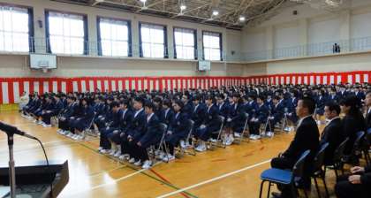 来賓の皆様、地域の皆様、保護者の皆様、そして先輩方の温かい祝福を受け、第61回入学式が盛大に挙行されました。今年度の新入生は149名です。
