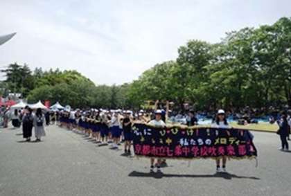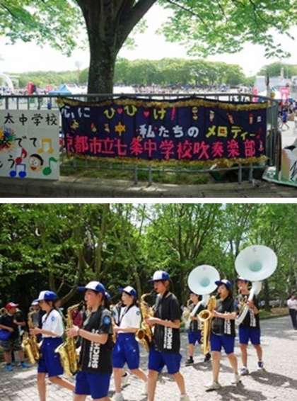 70校ほどが一つの会場のあちこちで演奏をしており、とても盛り上がっていました。まだ楽器を吹けない一年生も上手な演奏を聴いて「かっこいい」と憧れの気持ちを持ったようです。大変疲れましたが良い経験になりました。お疲れ様でした。