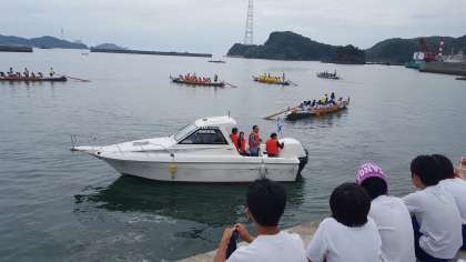 生徒は始めての体験なので 少し緊張気味で漕手が使