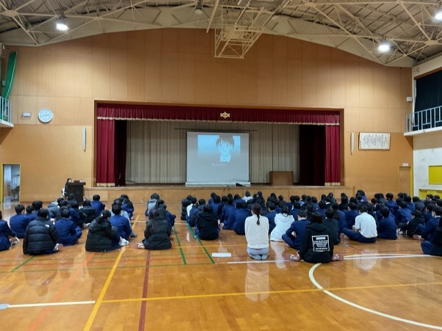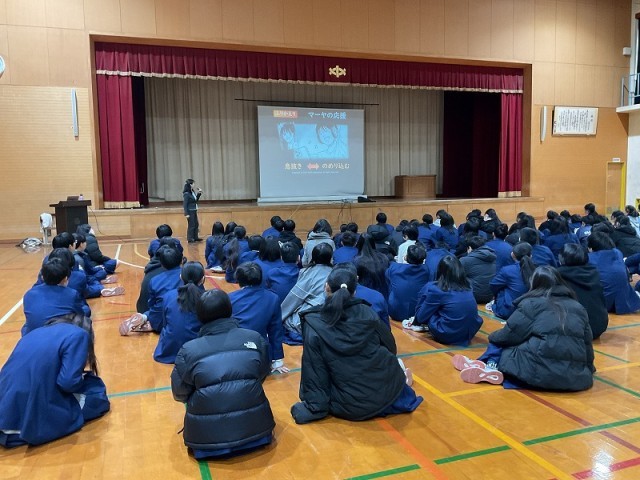 本日1年生は、体育館にてKDDIさんのご協力でスマホ・携帯安全教室を行いました。
