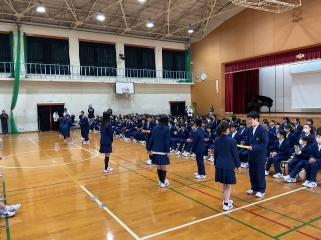新入生は七条中学校の一員としての一歩を踏み出しました。