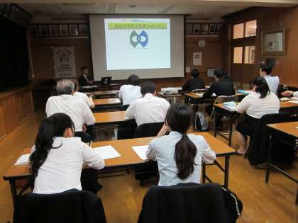 京都教育大学大学院より「フィールドワーク」として、学生の皆さんが、お越しになりました。「ふれあいサロン」で洛友中学校についての説明を聞いたあと、グループに分かれて、夜間部の選択授業の様子を参観していただきました。