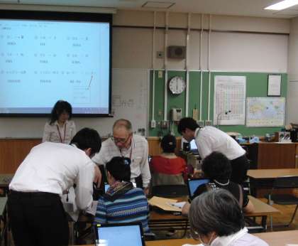 参観の予定でしたが、夜間部の生徒のみなさんの熱心さに引き込まれ、一人一人の質問などに答えたり、学習のお手伝いをしていただくことになりました。教室での生徒のみなさんの熱心に取り組む姿から、「学ぶ」ということについて、感じることがたくさんあったのではないでしょうか。