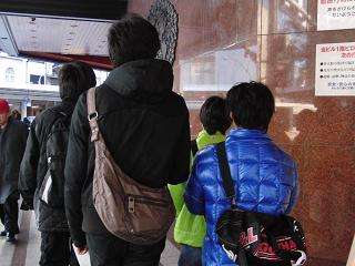 2つめの課題は、河原町駅の改札口から地上につながっている出口が11カ所あることです。これも、デパートをよく利用する生徒が利用していると思われる4番出口を選択してクリア。先頭を歩く3年生は、教員の姿を確認しながら慎重に道を選んで歩いていました。