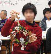 毎年冬休みに入る前に、全校生徒でちらし寿司を食べて、年末の楽しいひとときを過ごしています。去年は、お正月用の花を生けました。そして、今年はクリスマスリース。花屋さんが一人分の材料をすべてセットにして、作り方を教えてくれます。用意した飾りの中にはニッキ(=シナモン 漢方薬)や八角(=ハッカク 漢方薬)があり、それらからいい香りがしていました。飾りを作るときは、女性の美的センスが光ります。生徒は思い思いに自分の好きな飾りを選んで、リースを完成させていきました。市販のものよりもいいものができたので、私も見てて欲しくなりました。いい作品を作って、おいしい物も食べて、みんな笑顔で楽しい一日でした。