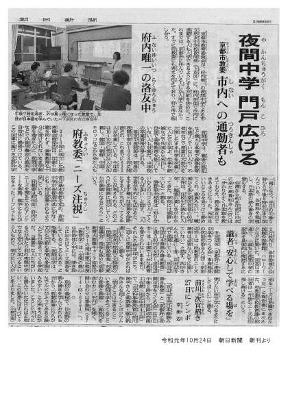 今日の朝日新聞朝刊で洛友中学校夜間部が紹介されました。