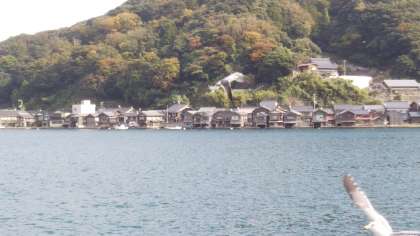 観光船から伊根湾の景色を眺めています。
