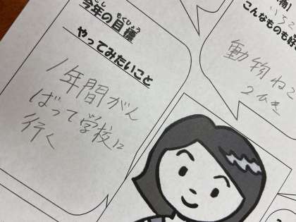 水曜日には、自己紹介や今年の目標のカードを書きました。人生の大先輩方が、目標をもって学ぼうとしておられる姿に、見ているこちらも背筋が伸びました。明るくポップな色使いもステキですね!