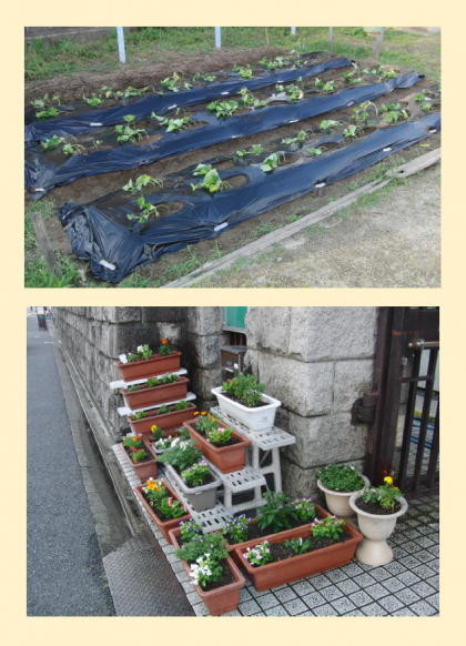 みんなで植えた苗が,これから,私たちの目を楽しませ,収穫の喜びを感じさせてくれることと思います。