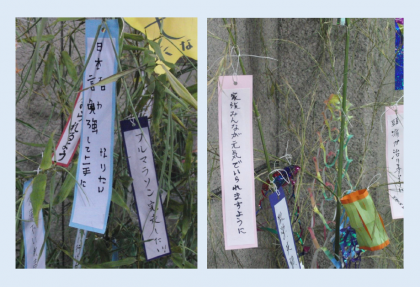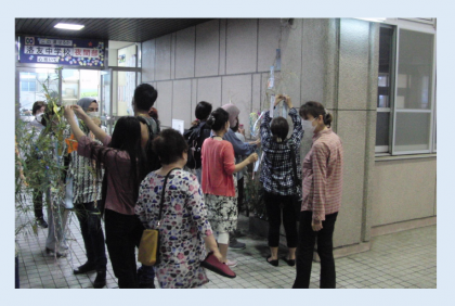 昼夜間部生徒が七夕飾りをつくり,それぞれのお願いを短冊に書きました。