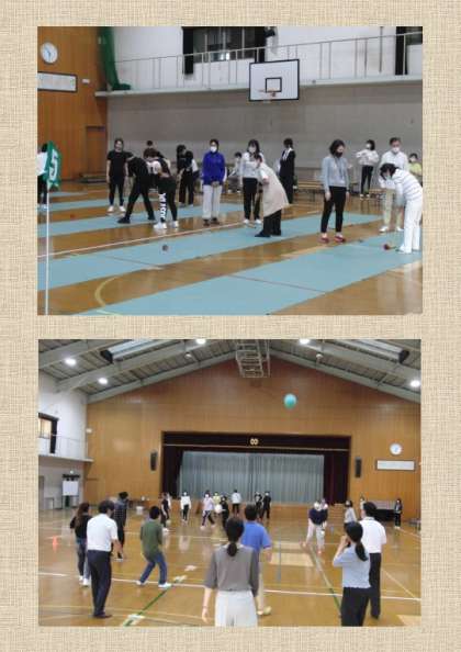 種目はペットボトルボーリング,カーリングゲートボール,玉入れの3種目で,体力に関係なくみんなが楽しめるように工夫をした内容です。ハーフタイムには自由参加のドッチボールで盛りあがりました。