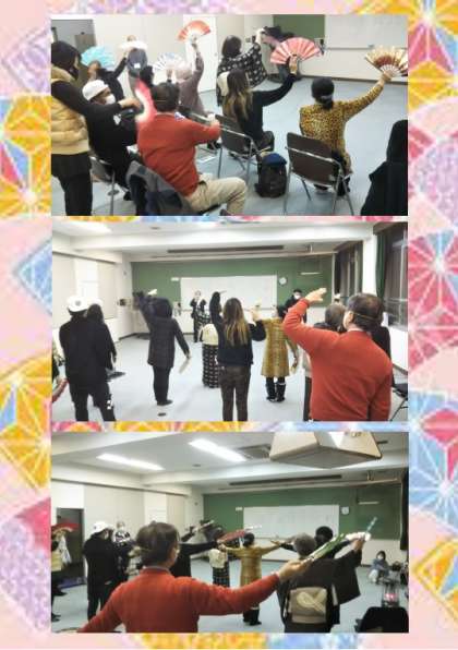 夜間部では京都文化企画室より講師の先生にお越しいただいて、「日本舞踊体験」を行いました。