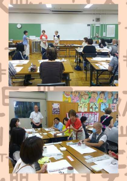講師の先生にお越しいただき、教えていただきながら、好みの色や柄を貼り付けて、自分だけのペン立てや器の作品づくりを楽しみ、韓国・朝鮮の文化に触れる体験をしました。