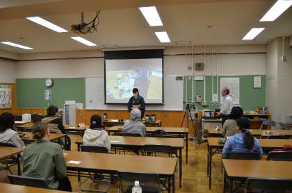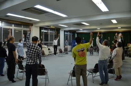 静かな雰囲気の中でお茶をたしなみ、ストレッチで体をほぐし、気持ちと体のリフレッシュです。さあ、がんばって勉強です。