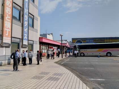 バスはおおむね予定通りに運行し、伊勢シーパラダイスに到着しました。安濃では、少し分厚い雲に覆われた天気でしたが、伊勢では晴天です。いつも通り、太陽を味方につけました!!(今のところは…。)
