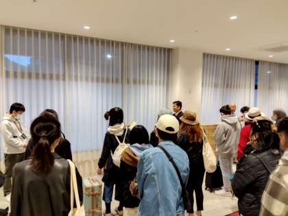 ホテルの方の熱烈歓迎(?)&宿泊上の注意等を聞いて、各部屋へと移動です。このあと、ホテル内でしばらく自由行動、そして、夕食&レクリエーションです。