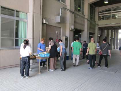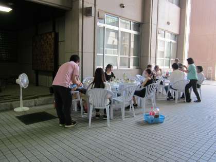 BBQが始まり、皆さん、お肉をほお張ったり、たこ焼きをつまんだりと、口の中をいろんな味が満たしていて、忙しいです。
