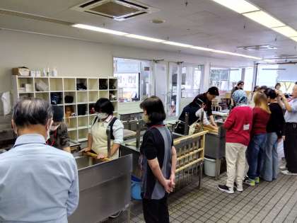 洛友中ご一行は、二チームに分かれて、今から施設見学をしたり、紙すき体験をしたりします。貴重な体験の機会です。楽しんできます!!