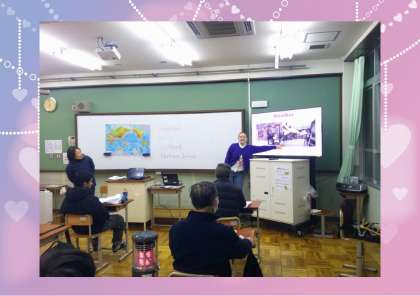 夜間部ではALTのジョー(ジョアンナ)先生に故郷ウェールズのお話を聞かせていただきました。冬の寒さのことや、お祭りのこと、料理のことなど、同じバレンタインデーといっても、パンケーキといっても、日本とは少し違った「へぇー」と思うような楽しいお話ばかりでした。