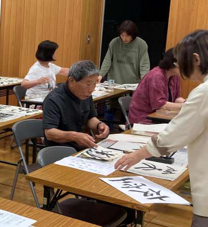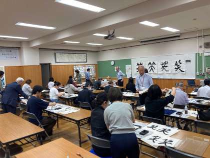 本日、夜間部の皆さんは書道を行いました。書道の時間では、水明書道会の2名の講師の方がボランティアとしてお越しいただき、指導を行っていただいています。生徒の皆さんは、楽しみながら時間いっぱいまで本日の「笑」の文字を丁寧に書いていました。生徒の皆さんが楽しみにしている時間の一つです。次回も楽しみです。
