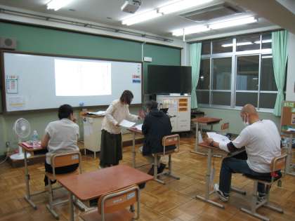 国語の様子です。詩を読み、なぜ文章の並び順が普通でないのか、「〜のような」の比喩表現など復習をしながら詩を学んでいました。