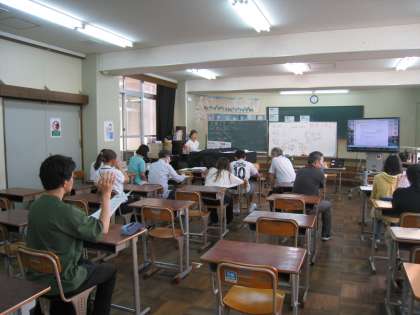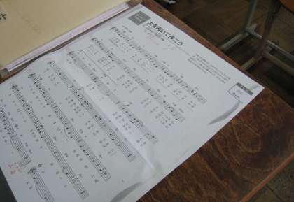 音楽の授業では、授業の初めに校歌を歌っています。担当教師からは、卒業しても忘れることのないように在学中にしっかりと歌いましょうと声掛けがあり、生徒の皆さんも心を込めて歌っていました。また、坂本九さんの「上を向いて歩こう」を楽譜を見ながら曲の構成を学び、合唱しました。いつの時代も不安なことはありますが、この歌詞に込められた思いを感じ取り、上を向いて一歩一歩進んで行きましょう。