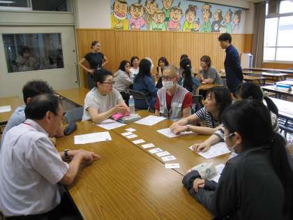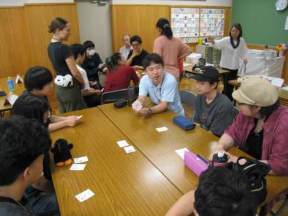 昼夜間部の交流の時間の取組として絵本作りを行っています。昨年度に引き続き、絵本作家の方をお招きし、テーマ決めや制作の流れ、完成までの工程を説明していただきました。本日は、チームでヒントカードを使ってテーマ決めを行いました。どんな作品になるか楽しみですね。