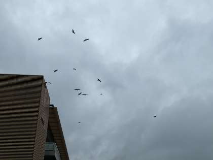 雲空にたくさんのトンビが飛んでいました。