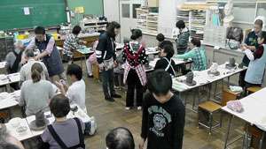 「ここ,どうするの?」「できたわ。次は?」…という声に応え,昼間部の子どもたちは,夜間部の生徒さんに分かるように,あちこち飛び回って,一生懸命に教えることができました。そして,「ありがとう」という言葉が飛び交い,とても和やかな雰囲気の実習でした。