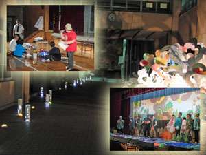 夜間部は,劇「ぼくのだ! わたしのよ!」の発表です。けんか好きの3匹のカエルが様々なことを体験して成長し,「仲間の大切さ」「共に生きる尊さ」を学んでいく物語です。ラストシーンでは,東日本大震災で甚大な被害に遭いながらも一人の犠牲者も出さなかった岩手県釜石小学校の児童のみなさんが,避難所で寂しく苦しい中でも互いに励まし合うために歌ったという釜石小学校の校歌を,私たちも昼間部と夜間部とで合唱しました。