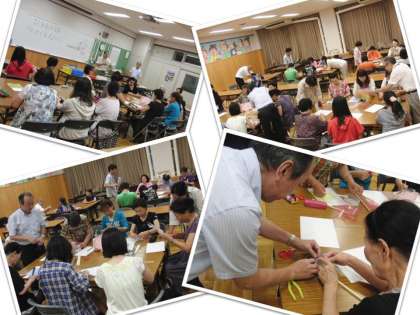 9月2日(水)の交流の時間に、昼・夜間部合同でグループをつくり、文化祭の合同制作「風車づくり」を行いました。